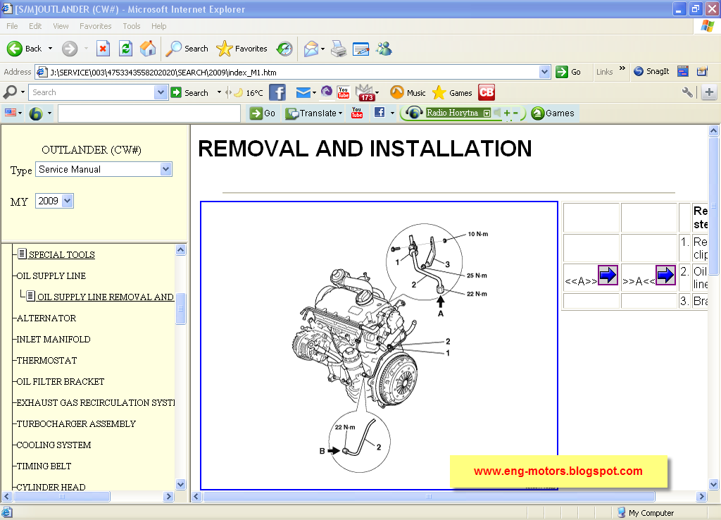 mitsubishi outlander 2009 شرح كامل لجميع اجزاء الميكانيكا وخرائط الكهرباء الخاصه بسيارات