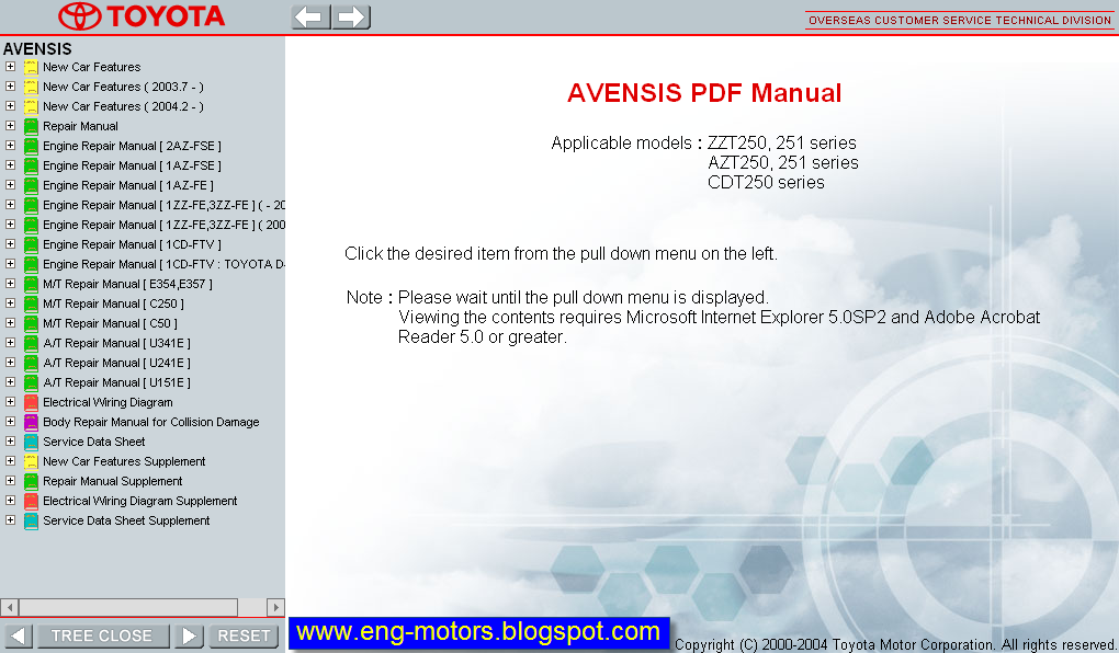 Toyota Avensis Electrical Wiring Diagram (EWD)