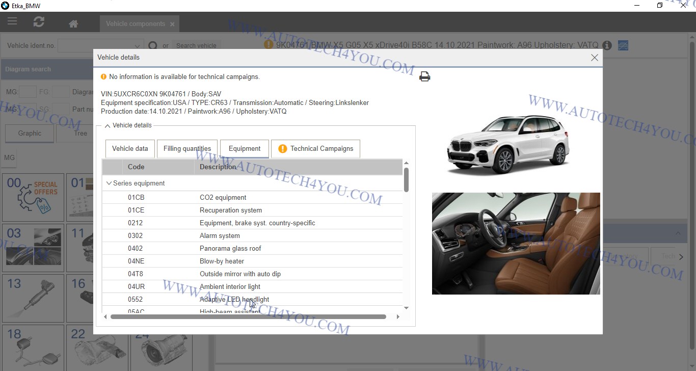 • يعتمد على قاعدة بيانات رسمية من كتالوج BMW ETK أونلاين، وبالتالي يضمن أعلى درجات الدقة.