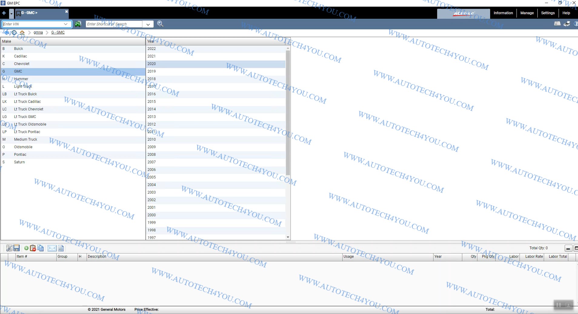 5- يحتوى الكتالوج على جميع سيارات جينرال موتورز(شيفيرولية-جمس-هامر-بونتياك-أوبل-بويك-ساب-ساتيورن-هولدن-إلخ) من عام 1977حتى 2022.