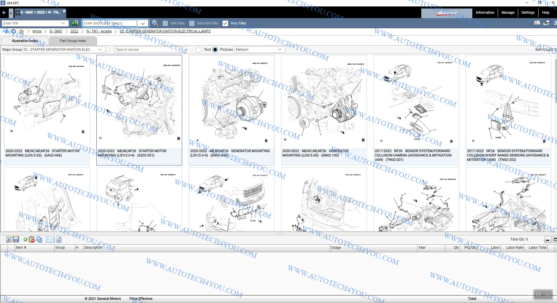 كتالوج قطع الغيار المتخصص لشركة جنرال موتورز والذى يضم المواصفات الامريكية والكندية من عام  1977 – 2022 . تعد شركة جينرال موتورز من الشركات الرائده فى صناعه السيارات على مستوى العالم والتى أسست عام 1911 . والتى تضم عدد مختلف من الشركات شيفورلية ,جى ام سى , كاديلاك و بويك … .