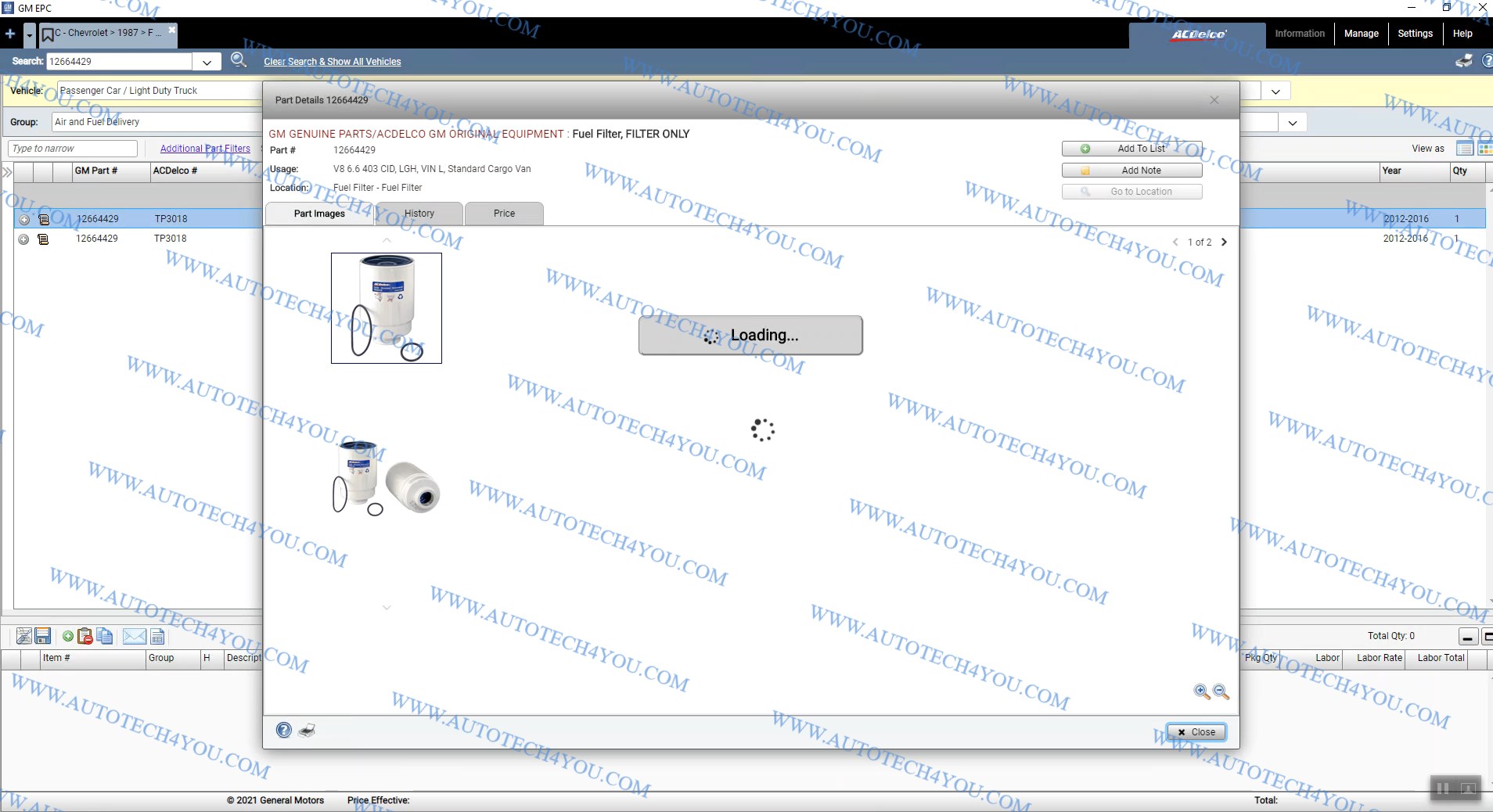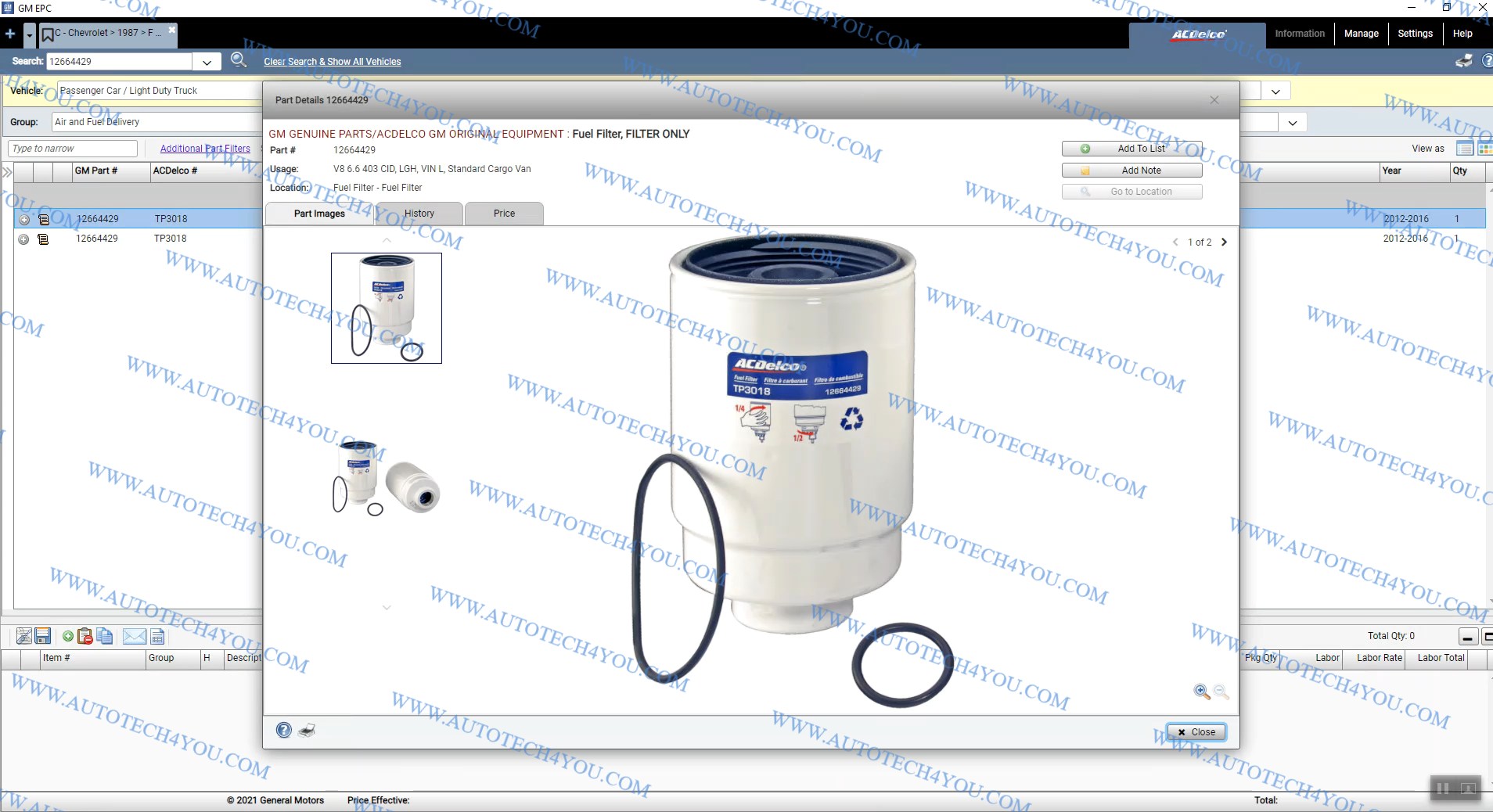 2- إمكانية البحث بأستخدام رقم القطعة جى أم او رقم أى سي ديلكو ACDELCO Part number.