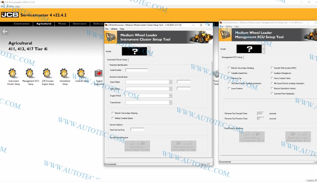 - يسمح إجراء المعايرة JCB ServiceMaster 4 v22.4.2 للمستخدم بتشخيص آلات البناء الزراعية والمحركات JCB.
