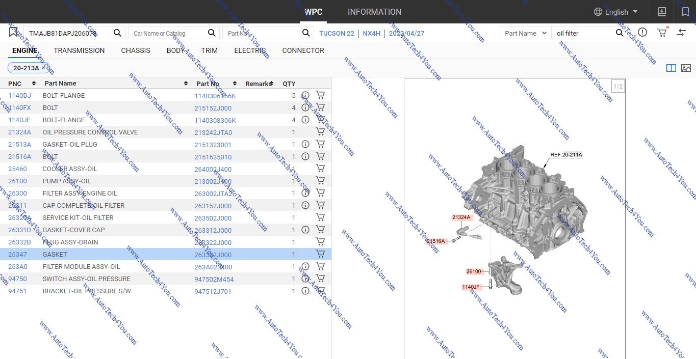 - يمكن استخدام الكتالوج من خلال رقم الشاسيه VIN المكون من 17 رقم
